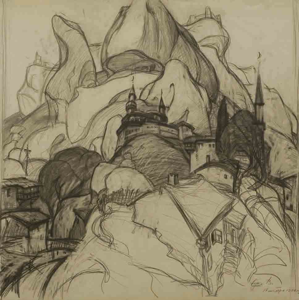 Sketch to the project Cimmerian shores. Paper. Pencil. Year: 1997.