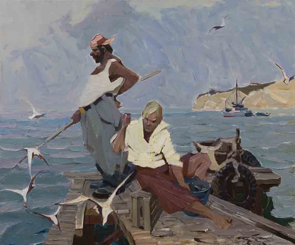 Fishermen, canvas, oil. Size: 100x120. Year: 2005.