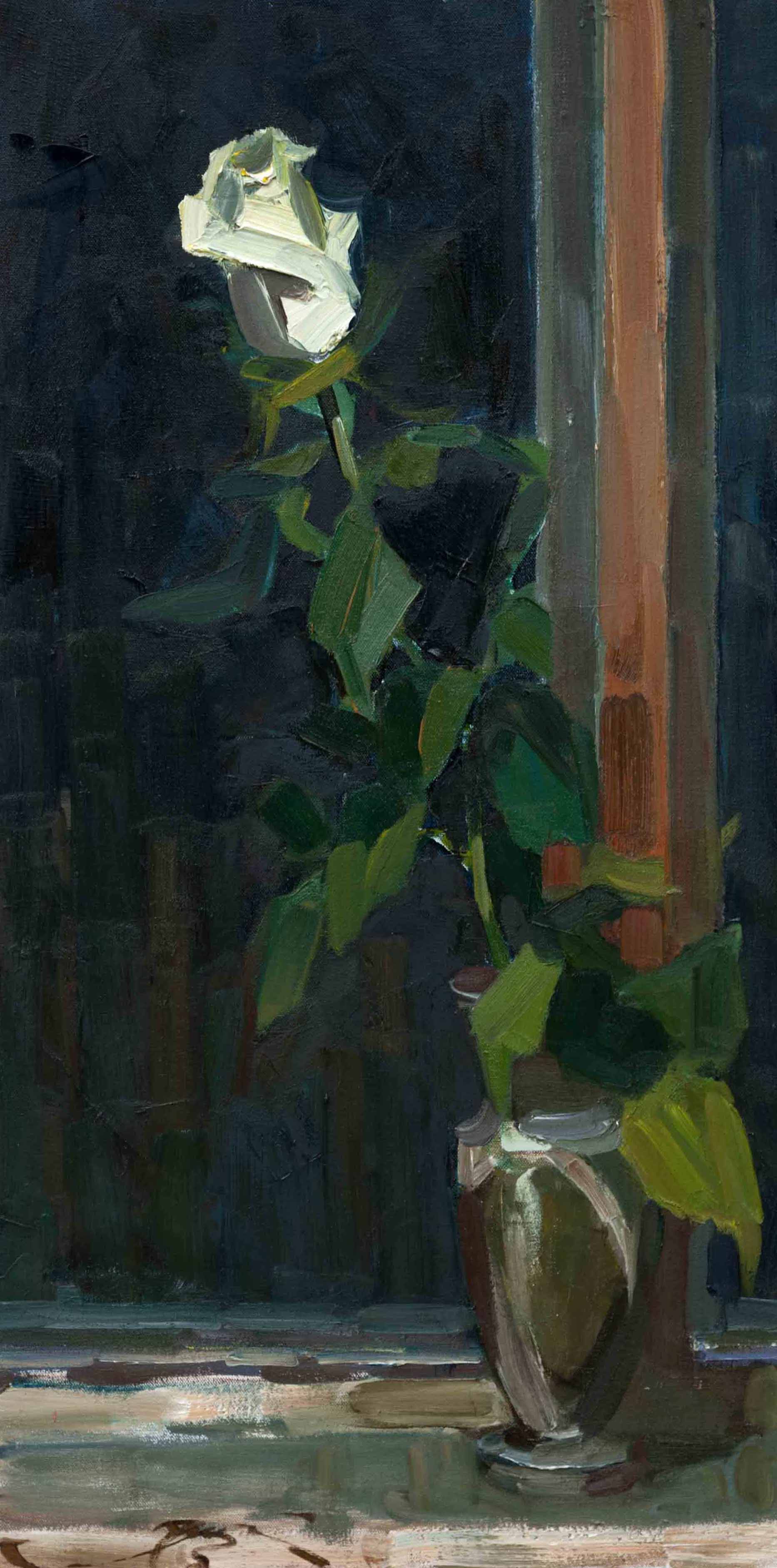 White rose. Canvas, oil. Size: 100х50. Year: 2014